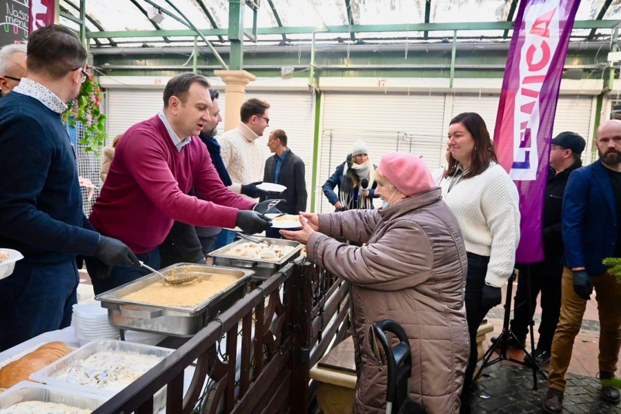 Świąteczny poczęstunek dla mieszkańców Łodzi to coroczna akcja zapoczątkowana przez SLD kilkanaście lat temu, a kontynuowana przez Lewicę. Każdego roku w Wigilię na Zielonym Rynku politycy, samorządowcy i działacze Lewicy częstują mieszkanców świątecznymi potrawami. Podobnie było i w tym roku. Na mieszkańców czekały takie potrawy, jak pierogi z kapustą i grzybami, kapusta z grochem, śledzie, ryba po grecku czy śledzie. Nie zabrakło też słodkiego deseru i możliwości porozmawiania z posłem Tomaszem Trelą, wiceprezydent Małgorzatą Moskwa-Wodnicką, radnymi Krzysztofem Makowskim i Agnieszką Wieteską czy działaczami Lewicy - Sekretarzem Wojewódzkim Grzegorzem Majewskim i wiceprzewodniczacymi Nowej Lewicy w województwie Elżbietą Żuraw, Michałem Pietrzakiem i Wiktorem Idzikowskim.