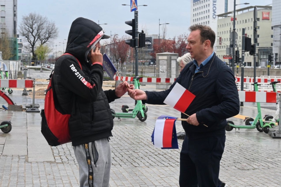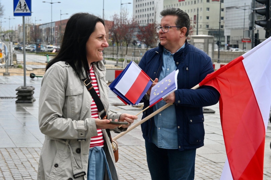 "Wczoraj świętowaliśmy święto ludzi pracy, 19. rocznicę wejścia Polski do Unii Europejskiej, a dzisiaj świętujemy Dzień Flagi i dzisiaj Lewica rozdaje mieszkańcom Łodzi, ale też tym, którzy odwiedzają Łódź, flagi, przede wszystkim biało-czerwone, bo to nasz symbol i nasza wartość, ale z racji tego, że jesteśmy w wielkiej wspólnocie europejskiej, dzisiaj postanowiliśmy rozdawać też flagi unijne, bo wszyscy jesteśmy Europejczykami, wszyscy jesteśmy Polakami. Jesteśmy dumni z tego, że jesteśmy Polakami, ale też jesteśmy bardzo dumni, że 19 lat temu Lewica wprowadziła Polskę do Unii Europejskiej" — mówił poseł Tomasz Trela, wiceprzewodniczący Klubu Lewicy.